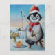 Postal Whimsical Penguin Ice Fishing Watercolor Art