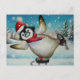 Postal Whimsical Pingüino Hielo Patinaje acuático Arte