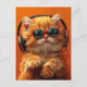 Postal Whiskers de DJ - Gato Naranja divertido con audífo