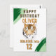 Wild Tiger Head Watercolor Birthday Postcard. Featuring a watercolor tiger head, bold green brushstrokes, and customizable text, this design is perfect for any young adventurer. Personalize with any name and age to create a truly unique and memorable greeting. Ideal for jungle themed parties or tiger lovers.