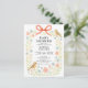 Celebra a la futura madre con esta dulce y caprichosa invitación a la ducha de bebé, perfecta para una celebración con temática de primavera o jardín. El diseño está decorado con un delicado arco floral de color acuático de melocotón suave y flores silvestres azules, acentuado por dos encantadores pájaros y un arco de coral pintado a mano en la parte superior. El texto está configurado en un tipo de letra serif clásico, lo que ofrece un ambiente atemporal y elegante. Esta invitación capta la dulce alegría de dar la bienvenida a un pequeño lugar, lo que lo convierte en una elección ideal para una reunión cálida, inspirada en la naturaleza. Personaliza el tuyo hoy para crear un keepsake tan especial como la ocasión!