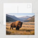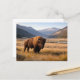 This wildlife photography design features a powerful American bison standing in a wide golden valley surrounded by rolling grasslands and distant mountain ranges. The massive animal is captured in warm natural light, highlighting the thick dark fur and strong silhouette against the open prairie. Behind the bison, a winding river cuts through the valley while forested hills and rugged mountains rise toward a clear sky. The soft earth tones of the meadow and the cool blues of the distant peaks create a balanced and dramatic wilderness scene. With realistic detail and a sense of vast open space, this design celebrates the iconic presence of bison roaming the untamed landscapes of the American West.