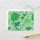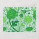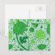 Postal en un William Morris, Art Nouveau, patrón textil - elegante, estilizado, crisantemos, girasoles y hojas, en tonos lima y verde esmeralda, sobre un fondo blanco