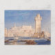 Rodas. Joseph Mallord William Turner (1775 - 1851). Un bonito paisaje marino en tonos rosa y azul. En primer plano hay barcos y barcos en la bahía, cerca de las murallas de la ciudad. en el centro, hay una torre alta. Al fondo, una ciudad con casas de piedra. Reproducción de obras famosas de imágenes artísticas de dominio público.