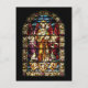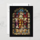 Esta tarjeta contiene una fotografía de una vitrina vidriera de colores vivos.