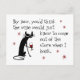 He estado comprando aquí por tanto tiempo, a estas alturas pensarías que el vino sólo sabría salir de la tienda cuando toques la bocina. Esta graciosa cita acerca de las características del vino es que el gato negro personalizado bribón, el gato Cabernet, lleva sus gafas de sol y una copa de su vino tinto favorito. Está rodeada de estrellas de color burdeos, que se suman al estilo de mediados de siglo. Incluso el tipo de letra tiene una cualidad retro. A los amantes del gato que aprecian el estilo vintage y las divertidas declaraciones de vino les encantará recibir esta postal humorística por correo.