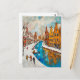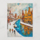 Acrylic fantasy painting of a European canal in winter, with snow-covered streets, colorful houses, and people walking under a clear sky. The cool palette and stylized composition evoke seasonal magic, urban coziness, and festive charm. Ideal for winter-themed products, city decor, calendars, greeting cards, and editorial use.