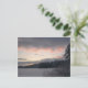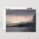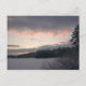 Postal de invierno. Fotografía paisajística de New Hampshire en un lago congelado mientras el amanecer golpea las nubes.