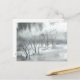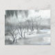 Los árboles alcanzan un cielo de invierno polvoriento y nublado. Pastillas de nieve y remolinos. El invierno es hermoso. Pintura original de pincel chino de Ren Adams reproducida aquí en una postal de acabado brillante de textura ligera.