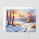 Verzaubere deine Liebsten mit dieser atemberaubenden Postkarte im Stil eines Ölgemäldes. Das Motiv fängt die friedliche Schönheit einer verschneiten Landschaft bei Sonnenaufgang ein.