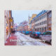 Postal con escena invernal de una de las calles principales más concurridas de Bamberg, Alemania, en el momento de las vacaciones de invierno al atardecer. El texto dice "Saludos desde la Alemania de Bamberg" y es totalmente personalizable.