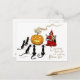 ¡Esta bruja es una maldita profesora! Esta imagen vintage de Halloween muestra a una bruja enseñando gatos negros y una linterna de jack o'.