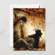 Postal Witch With Coffee and Her Pet Black Goat in Autumn