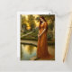 Postal Woman By Garden Pond At Sunset