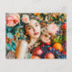 Postal Woman with fruit and floral rose decor