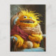Postal Wool monster crocheting in a chair. Funny