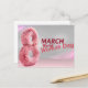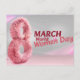 A 3D number eight, drawn with pink feathers on a gray background, along with the message "Happy International Women's Day".