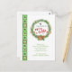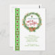Un Navidad saluda una postal con una corona acuarela. Agujas de pino verde, conos de pino y bayas decorativas componen esta flor festiva. Dentro de la corona hay algunos adornos decorativos y las palabras" pueden ser sus días Merry & Bright. Escrito con un moderno tipo de letra rojo. Un patrón verde y rojo con cuadrados extravagantes a lo largo del borde.