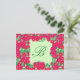 Postal Wreath de Poinsettia con monograma, rojo y verde