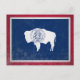 Share the American West through postcrossing with this iconic postcard featuring the Wyoming state flag with its distinctive white buffalo on blue field and state seal. Perfect for postcrossing exchanges, flag collectors, or celebrating Wyoming heritage. High-quality print showcases Wyoming's bold flag design representing frontier spirit. Ideal for international postcrossing networks, building US state flag collections, or connecting worldwide while honoring Wyoming's Yellowstone wonders, cowboy culture, Grand Tetons, and proud Western identity. 🇺🇸📮🏴✉️