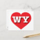 Esta postal tiene un vibrante corazón rojo que contiene las letras atrevidas, blancas y fundas superiores WY, la abreviatura oficial de Wyoming, el estado vaquero. El reverso de la postal está en blanco, esperando el texto personalizado o los sentimientos escritos a mano.