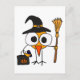 Un pájaro gracioso vestido de bruja y sosteniendo una bolsa de truco o de regalo y un diseño de personalizado de teléfono celular. Único y divertido y una gran idea de regalo. También puede agregar texto personalizado al realizar el pedido. Por favor, trae una sonrisa. Muchos de los diseños iniciales dicen Twick o Tweet.