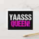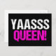 Yaasss Reina. Yass Queen es una cita divertida de la cultura popular usada por chicas descaradas y reinas drag divas. Una postal negra y rosa caliente adorable.