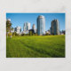 El paisaje del moderno barrio de Yaletown en Vancouver, Columbia Británica está compuesto por rascacielos altos y de cristal. En primer plano está el parque David Lam, un refugio tranquilo en los meses de verano en Canadá. Esta postal es totalmente personalizable.