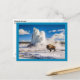 Postal se muestra con una hermosa foto impresa de un bisonte cerca de un géiser en el Parque Nacional Yellowstone. Personalizar este artículo o compra tal cual. Imagen de stock