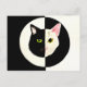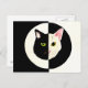 Pintura acuarela de un gato negro y un gato blanco, media cara, estilo yin yang