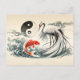 Postal Yin y Yang Koi y Crane en estilo de arte asiático