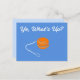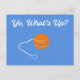 Envía un mensaje amistoso como haces con esta divertida postal. El estilo retro de las letras explica el mensaje YO, QUÉ PASA? sobre un ilustracion de un juguete yo-yo clásico. Hay un gráfico de yoyo de coordinación en el reverso que está en blanco para que el usuario escriba en su propio mensaje.