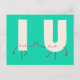 Personajes de letras verdes y rojas imprimen postal