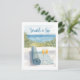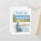 Invite a sus invitados a un día de mindfulness y mimosas con esta elegante invitación de tarjeta postal de acuarela que presenta un fondo oceánico pacífico. El diseño muestra suaves tonos azules pastel y beige arenoso, con una elegante silueta de yoga estirándose cerca del borde del agua. En la parte superior, una hermosa escritura dorada dice "Estira y bebe", capturando el espíritu de equilibrio, relajación y diversión. Perfecto para brunch de yoga, retiros de spa, eventos de bienestar en la playa o reuniones de despedida de soltera conscientes.