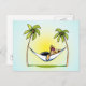 Obra original de Andie de Off-Leash Art™ de un yorkie durmiendo en una hamaca que se extiende entre dos palmeras. Regalo divertido para los amantes del Yorkshire Terrier.