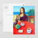 Mona sale a tomar el té con sus dos yorkies. Ella y Leo (como en Leonardo da Vinci) han tenido una riña, y le ha escrito una carta de Querido Leo. Pobre Leo. Por lo menos el es bueno. ¡Brillante, divertido, colorido, magnífico RED que grita mírame! De mi pintura original ©Lyn Hamer Cook.