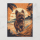 Diseño de arte gráfico colorido de un yorkshire-terrier en una playa tropical con palmeras. Increíble regalo para el propietario de Yorkshire-terrier y amante de Yorkshire-terrier.