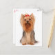 ¿Quién puede resistir la dulce cara de un perro perrito Yorkie? Esta divertida tarjeta postal canina incluye un perro cachorro de Yorkshire Terrier con una cinta roja en el cabello sentada en un crujiente fondo blanco. Las postales de perro son la alternativa económica a las tarjetas de felicitación cuando quieres enviar una nota rápida. Las postales de perro son estupendas para muchas ocasiones: * Agencias de rescate y adopción de perros * Saludos - hola, amor, gracias, pensando en ti, perdón, etc. * Negocios - veterinarios, comedores, criadores, entrenadores, etc. * Invitaciones - nueva dirección, guardar las fechas, fiestas * Notas personales * Recaudaciones de fondos / organizaciones benéficas Por favor, desplácese hacia abajo para ver otros productos de cachorro de Yorkshire Terrier.