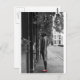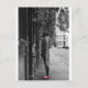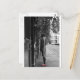 Negro y blanco de un chica con zapatos rojos que tiene una pausa en la calle afuera de un pub