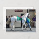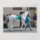 Zen Papa, un cordón blanco bien construido, de 3 años de edad, yendo al post en Aqueduct durante un frío día de invierno. Encabezado por su novio y entrenador y conducido por el jockey Irad Ortiz jr. con el sillón verde y blanco número 5. Esta hermosa arteria está construida como una máquina mientras camina hacia el paddock mientras sus admiradores miran. Fleetto