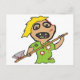 Un divertido diseño zombi con elementos clásicos como arma, sangre, cabello, ropa hecha jirones, heridas, dientes podridos, ojos locos y bicho de gateo. Para los fans zombis.