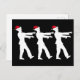 Zombis con sombreros de Santa Roja caminando en fila con brazos muertos o estirados frente a ellos. Una increíble postal de Navidades zombies para un fan del horror. Postal de Navidad negra de Guay para un amante aterrador del cine.