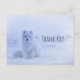 Tarjeta postal de agradecimiento de fiesta con una fotografía de un zorro ártico blanco. Un paisaje invernal nevado rodea a esta encantadora criatura.