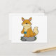 Postal Zorro con taza de café