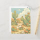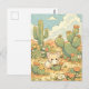 Envía algo del calor del desierto con esta tarjeta postal del adorable zorro fenec. En medio de las flores de las tunas y un saguaro imponente, un pequeño zorro de grandes orejas disfruta de un día soleado en las dunas. La escena está realizada con texturas suaves de acuarela y una paleta de menta, crema y albaricoque. Con nubes blancas y esponjosas y vibrantes flores del desierto naranjas y blancas, esta ilustración caprichosa captura el espíritu pacífico de un oasis escondido en el desierto.