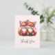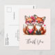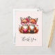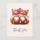 Tarjeta de agradecimiento con una adorable imagen de 2 zorros que llevan gafas de corazón con cristales rosados. Decorada con acentos de corazones.