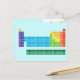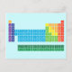 Postal con tabla periódica de los elementos, con cada grupo de elementos marcado en colores arcoiris.