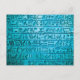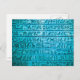 Una postal con antiguos jeroglíficos grabados en piedra en azul. Se pueden ver grietas a la izquierda. También disponible en otros colores, amarillo, verde, rojo y violeta. Véalos aquí: http://bit.ly/28L6VYp