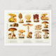 Esta postal presenta la reproducción de un ilustracion botánico vintage de varias setas comestibles.