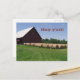 Diga "Hay" a los amigos y familia al estilo sureño con esta increíble tarjeta postal de Farm Life USA que presenta un granero rojo clásico y grandes balas redondas de heno.